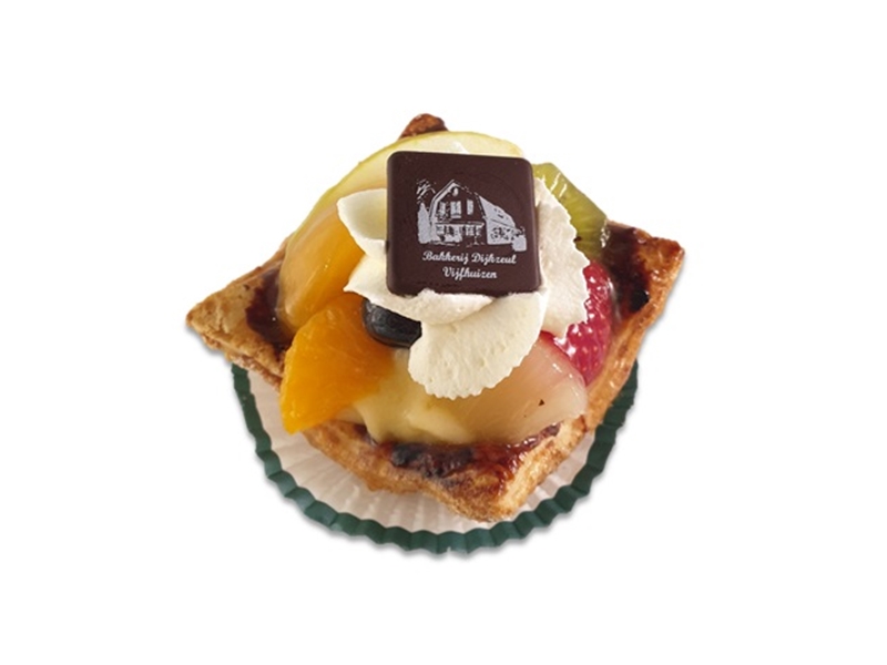 gevuld met gele room, vruchten en abrikozenjam